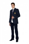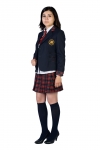 Официално облекло за момче и момиче - мъжко едноредно сако, риза, панталон, вратовръзка, дамско вталено сако с гарнитура каре, риза, пола каре с плохи, фишу, 3/4 чорапи