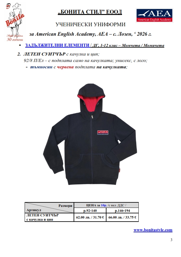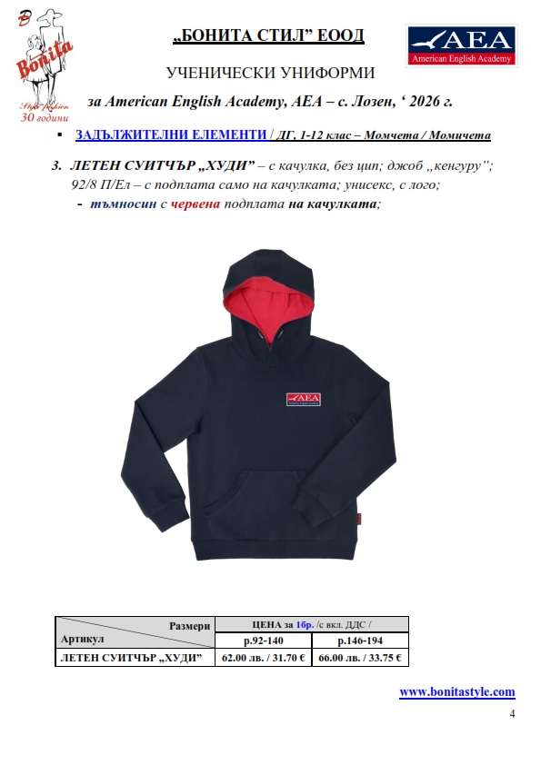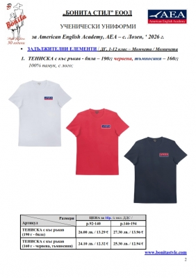 2. Единичните цени по артикули са калкулирани за договорените с училището основни материали. В случай, че Клиентът желае промяна на предвидените модели, както и на посочените в офертата материали, цените се предоговарят;