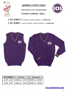2. Единичните цени по артикули са калкулирани за договорените с училището основни материали. В случай, че Клиентът желае промяна на предвидените модели, както и на посочените в офертата материали, цените се предоговарят;