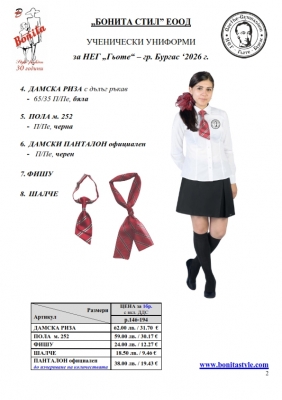 2. Единичните цени по артикули са калкулирани за договорените с училището основни материали. В случай, че Клиентът желае промяна на предвидените модели, както и на посочените в офертата материали, цените се предоговарят;