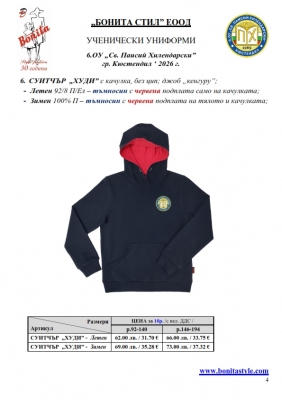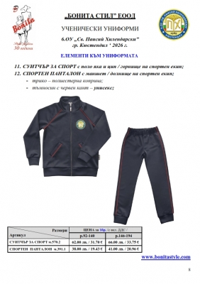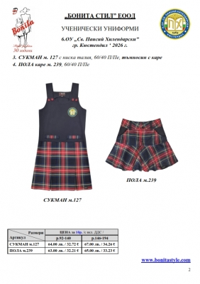 2. Единичните цени по артикули са калкулирани за договорените с училището основни материали. В случай, че Клиентът желае промяна на предвидените модели, както и на посочените в офертата материали, цените се предоговарят;