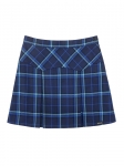 Карирана пола с подплата, силует трапец, с плохи на предна част и гръб. Вграден ластик в колана за регулиране обиколката на талията.