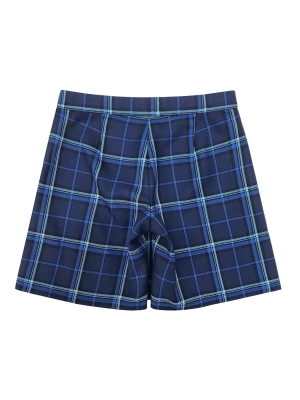 Карирана пола-панталон, силует трапец с плохи на предната част и вграден ластик в колана за регулиране обиколката на талията.