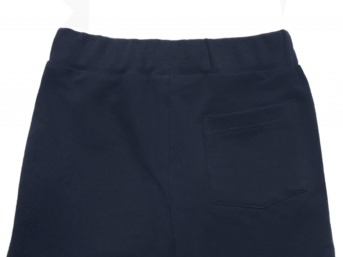 Дълъг тъмносин спортен панталон с еластичен колан.