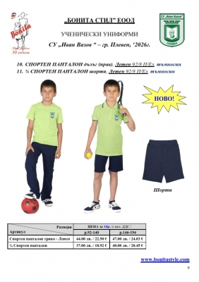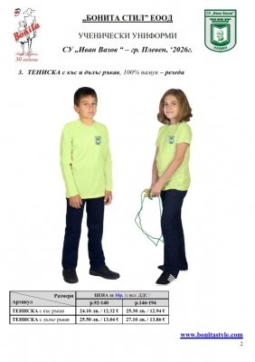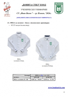 2. Единичните цени по артикули са калкулирани за договорените с училището основни материали. В случай, че Клиентът желае промяна на предвидените модели, както и на посочените в офертата материали, цените се предоговарят;