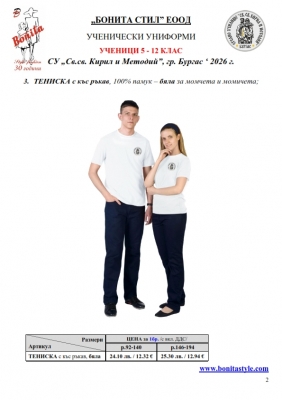2. Единичните цени по артикули са калкулирани за договорените с училището основни материали. В случай, че Клиентът желае промяна на предвидените модели, както и на посочените в офертата материали, цените се предоговарят;
