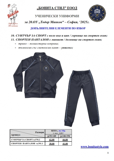 Осигуряване на нужната логистика при поръчване, изработване, покупко-продажба и доставка на униформено ученическо и друго облекло;