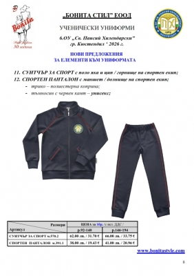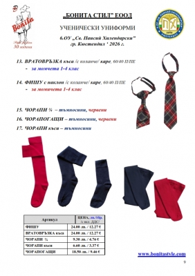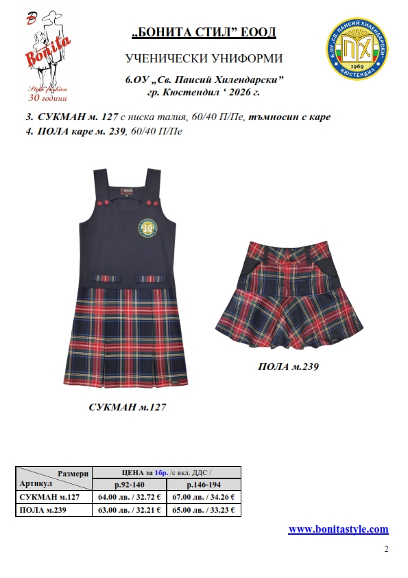 2. Единичните цени по артикули са калкулирани за договорените с училището основни материали. В случай, че Клиентът желае промяна на предвидените модели, както и на посочените в офертата материали, цените се предоговарят;