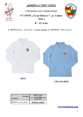 2. Единичните цени по артикули са калкулирани за договорените с училището основни материали. В случай, че Клиентът желае промяна на предвидените модели, както и на посочените в офертата материали, цените се предоговарят;