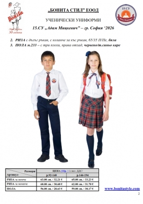 2. Единичните цени по артикули са калкулирани за договорените с училището основни материали. В случай, че Клиентът желае промяна на предвидените модели, както и на посочените в офертата материали, цените се предоговарят;