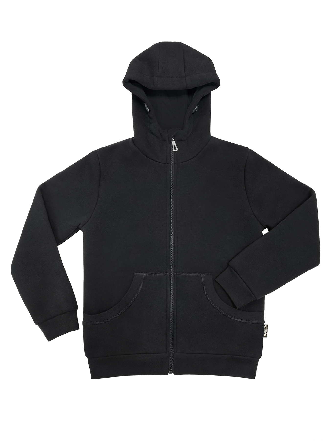 Черен суитчър с качулка и цип с черна памучна подплата на тялото и качулката - ЗИМЕН
